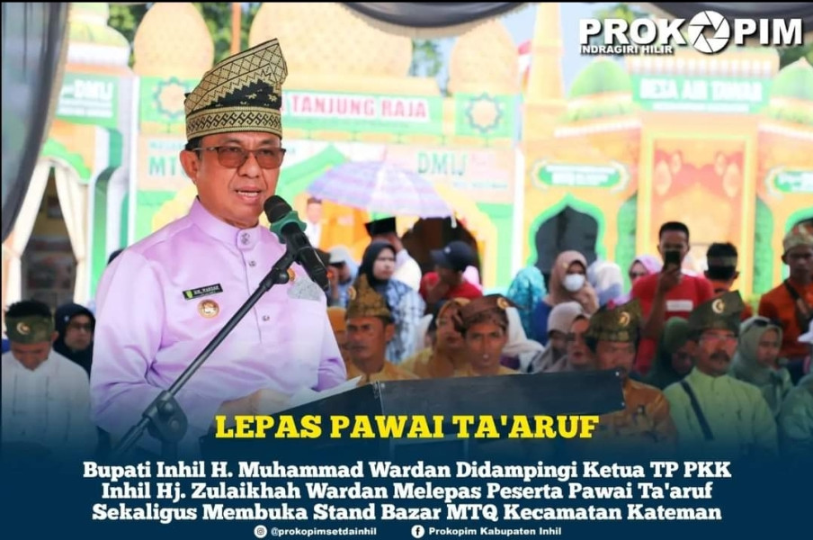 "Atas nama Pemerintah sangat menyambut baik dan mengapresiasi kegiatan pawai ta'aruf dan stand bazar ini. Diharapkan pawai taaruf ini menjadi sarana yang sarat dengan syiar Islam yang memperkuat Ukhuwah Islamiyah antar komponen masyarakat Inhil, khususnya Kecamatan Kateman," pungkas Bupati.