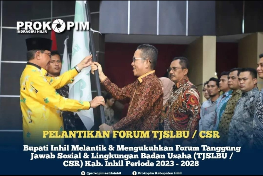 Bupati Inhil Melantik & Kukuhkan Forum TJSLBU / CSR Kabupate Inhil Periode 2023 - 2028