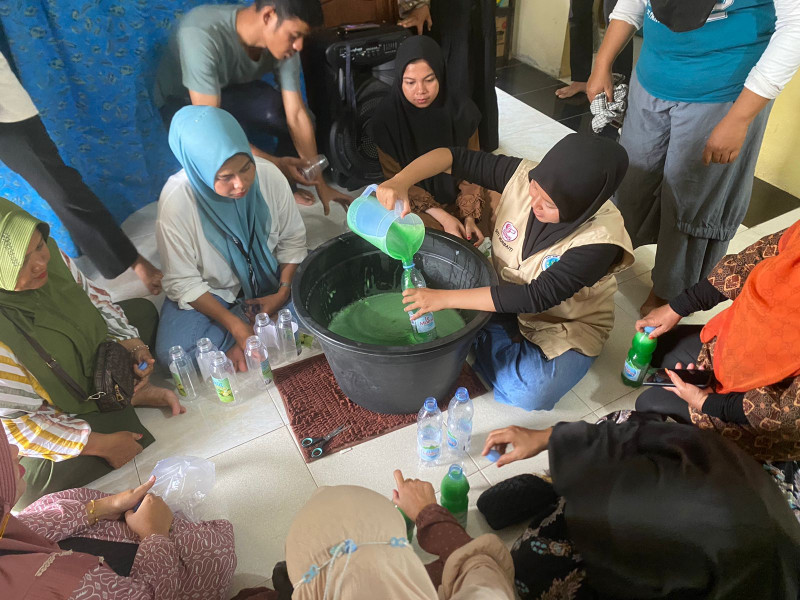Kelompok KKN Universitas Abdurrab Pekanbaru Gelar Pelatihan Pembuatan Sabun Cuci Piring di Kelurahan Air Dingin