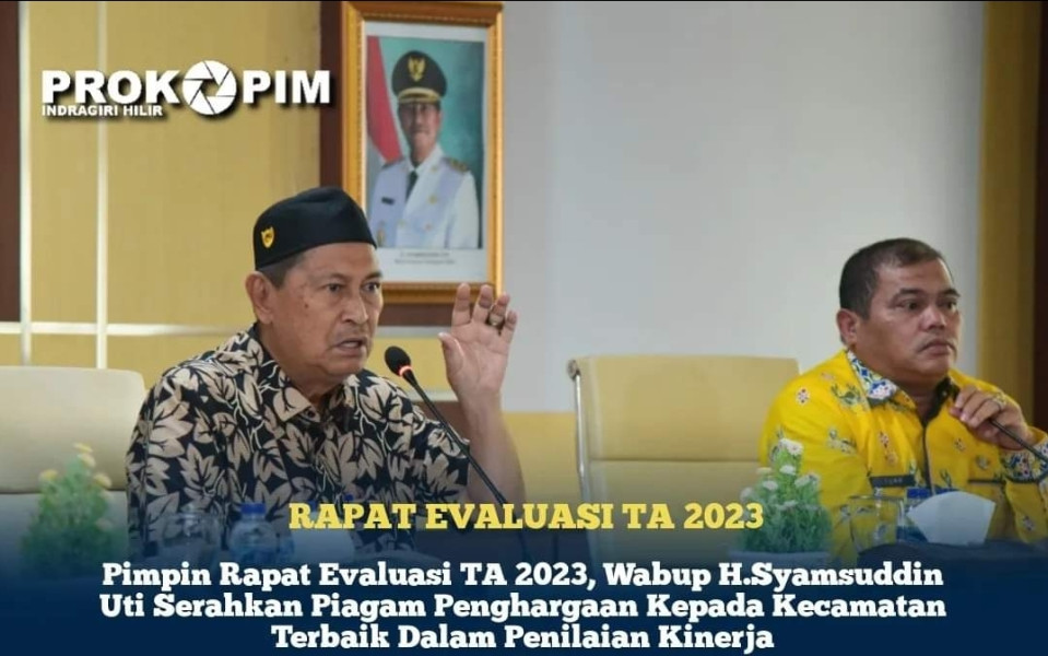 Pimpin Rapat Evaluasi 2023, Wabup Inhil Serahkan Piagam Penghargaan Kepada Kecamatan Terbaik Dalam Penilaian Kinerja