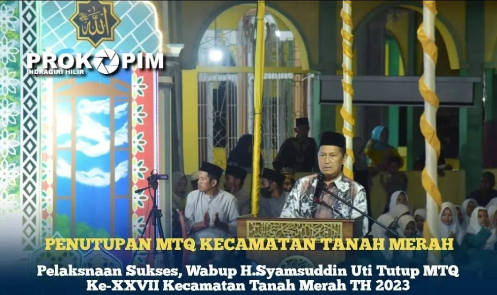 KILASRIAU.com, Kuala Enok - Perhelatan Musabaqah Tilawatil Qur'an (MTQ) Ke-XXVII tingkat Kecamatan Tanah Merah TH 2023 pada Jum'at (8/9/2023) malam secara resmi ditutup lansung Wakil Bupati Kabupaten Indragiri Hilir H.Syamsuddin Uti.