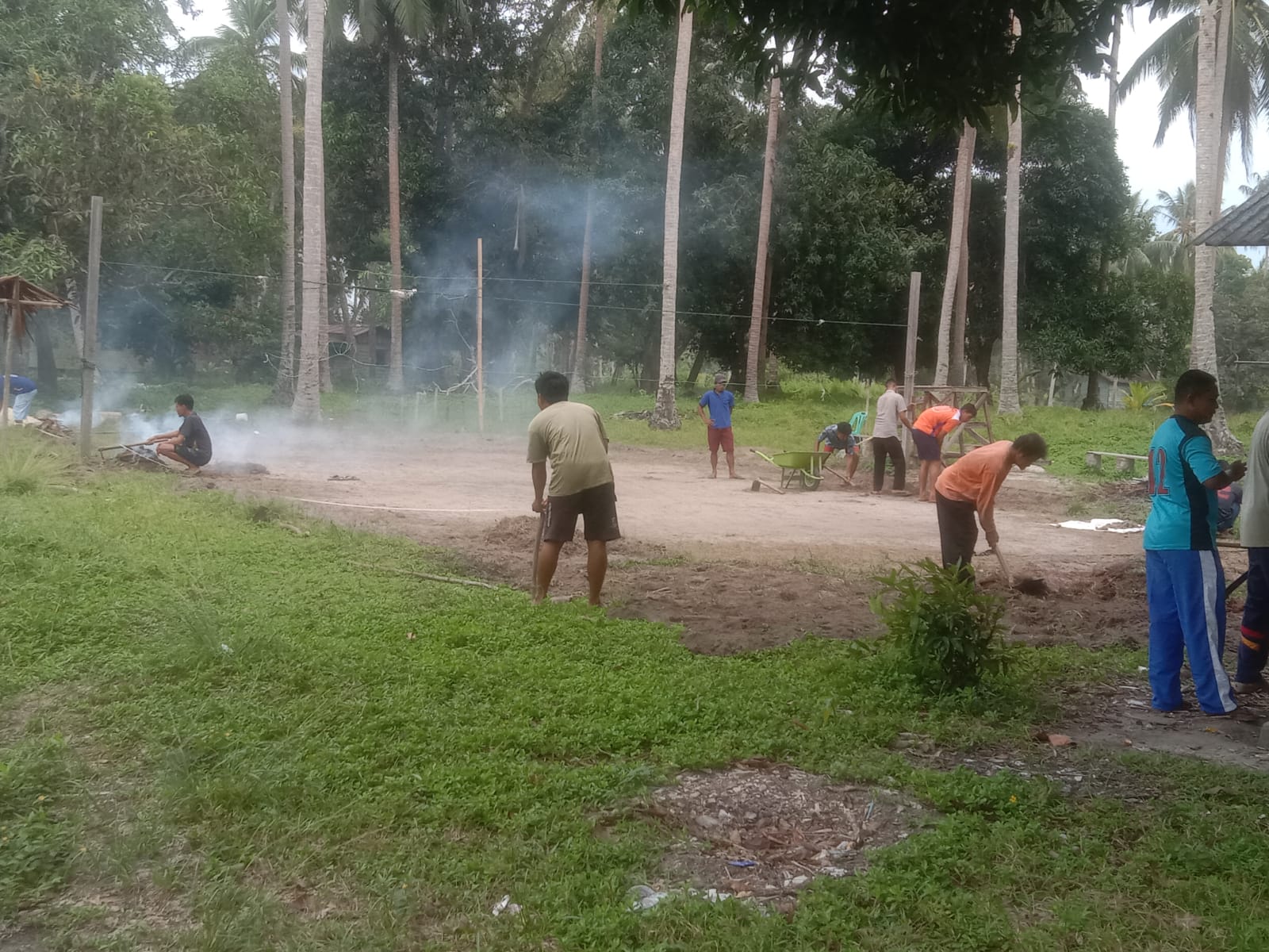 Saat kunjungan ke Penyong, Kelurahan Sedanau, Kecamatan Bunguran Barat, Kabupaten Natuna, Daeng Amhar bertemu masyarakat Penyong yang sedang bergotong royong membersihkan lapangan bola voli.