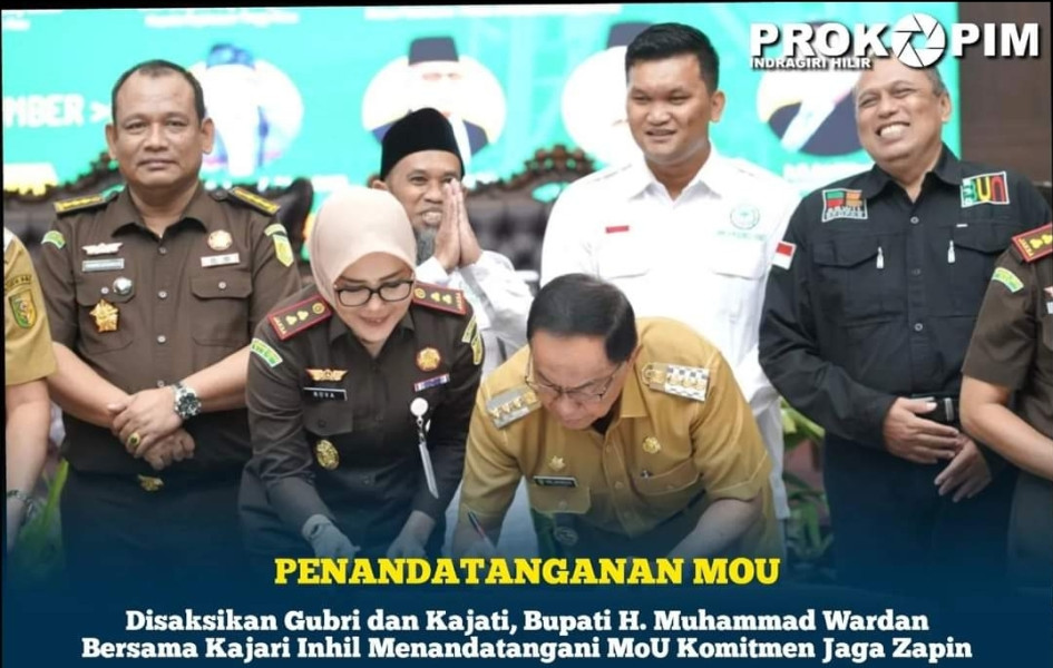 Penandatanganan MoU dilakukan oleh Bupati Inhil, HM. Wardan dan Kepala Kejaksaan Negeri Inhil, Nova Puspitasari, dengan disaksikan secara langsung oleh Gubernur Riau, H. Syamsuar dan Kepala Kejaksaan Tinggi Riau (Kajati), Dr. Supardi, SH MH.