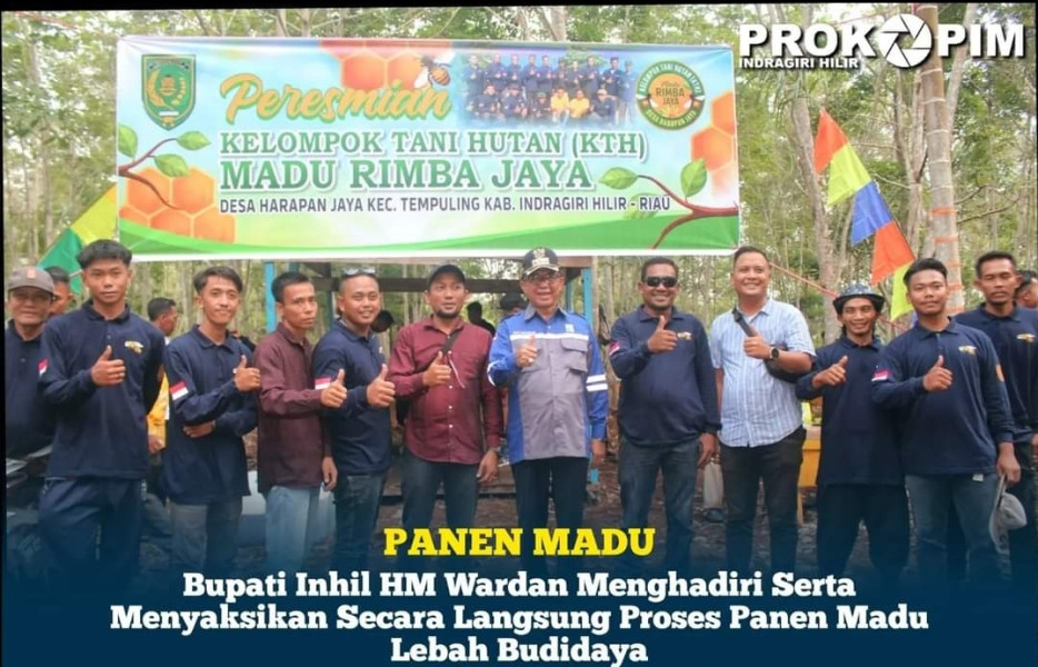 KILASRIAU.com - Bupati Indragiri Hilir (Inhil) HM Wardan Menghadiri serta menyaksikan secara langsung proses panen madu lebah budidaya milik kelompok tani madu rimba jaya desa harapan jaya kecamatan Tempuling, Kamis (21/09/2023)