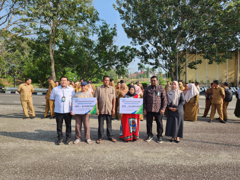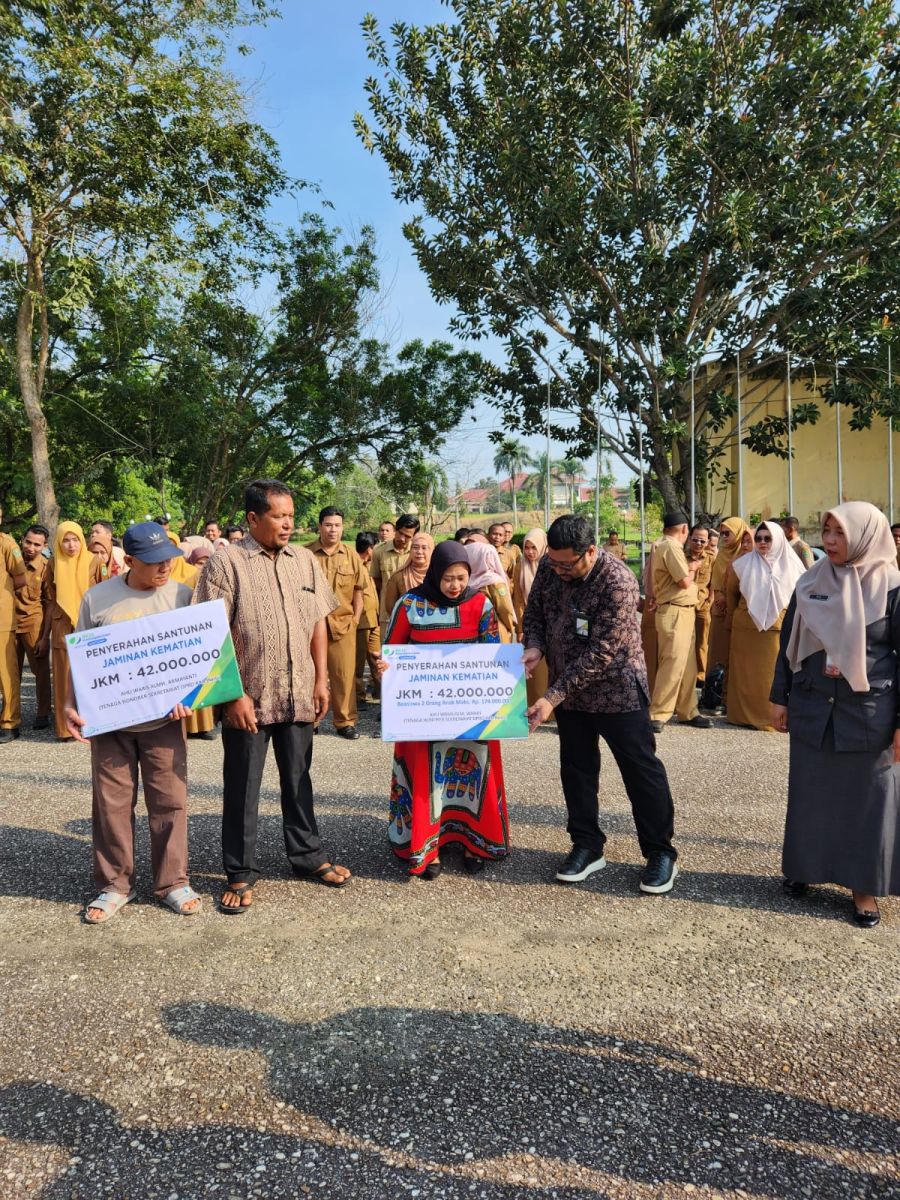 Penyerahan Simbolis Santunan Jaminan Kematian dan Beasiswa BPJS Ketenagakerjaan bagi Ahliwaris Tenaga Honorer Sekretariat Dewan Perwakilan Rakyat Daerah Kabupaten Inhu