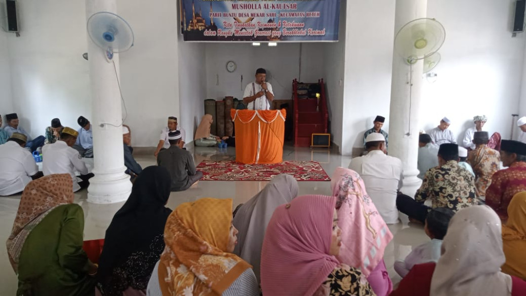 KILASRIAU.com - Pemerintah desa (Pemdes) Mekar Sari menyelenggarakan Maulid Nabi Muhammad SAW sekaligus sosialisasi Terkait data pemilih Pemilu Serentak Tahun 2024 di Musholla Al-Kautsar Parit Buntu Desa Mekar Sari, Selasa, 26 September 2023.
