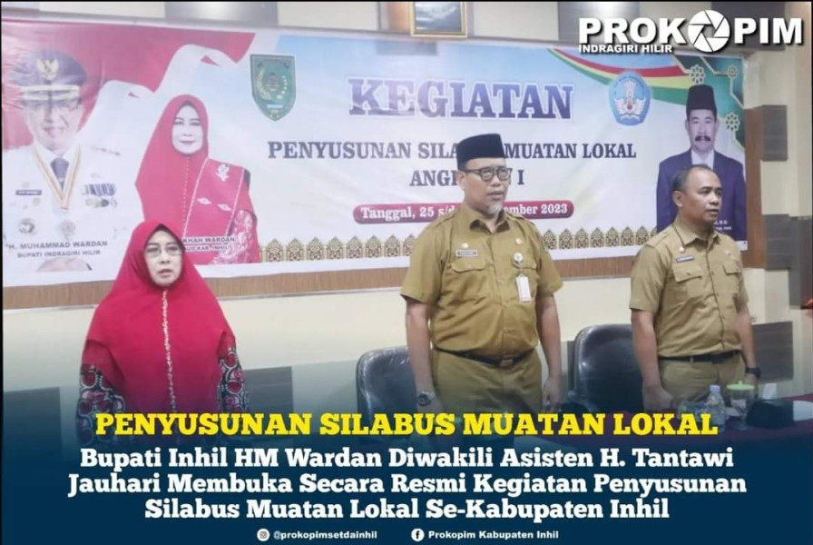 KILASRIAU.com - Bupati Indragiri Hilir yang diwakili Asisten I Bidang Pemerintahan dan Kesra Setdakab Inhil H. Tantawi Jauhari membuka secara resmi kegiatan penyusunan silabus muatan lokal pendidikan anak usia dini dan pendidikan non formal se-kabupaten Indragiri Hilir, bertempat di Hotel Harmoni Tembilahan, selasa (26/09/2023).