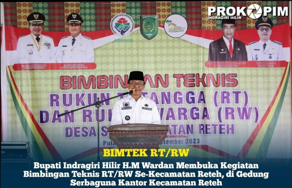 Hal itu disampaikan Bupati Indragiri Hilir H.M Wardan, saat membuka kegiatan Bimbingan Teknis RT/RW Se-Kecamatan Reteh, di gedung serbaguna Kantor Kecamatan Reteh, Jumat, (29/09/23).