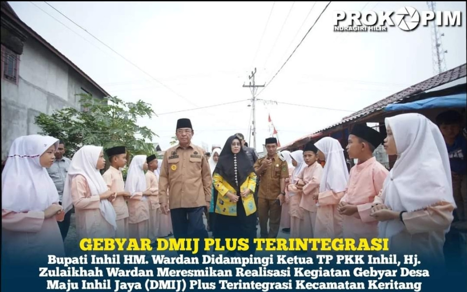 KILASRIAU.com - Bupati Kabupaten Indragiri Hilir (Inhil), HM. Wardan didampingi ketua TP PKK Inhil, Hj. Zulaikhah Wardan meresmikan realisasi kegiatan Gebyar Desa Maju Inhil Jaya (DMIJ) Plus Terintegrasi Kecamatan Keritang, bertempat di Desa Teluk Kelasa, Kecamatan Keritang, minggu, (01/10/2023).