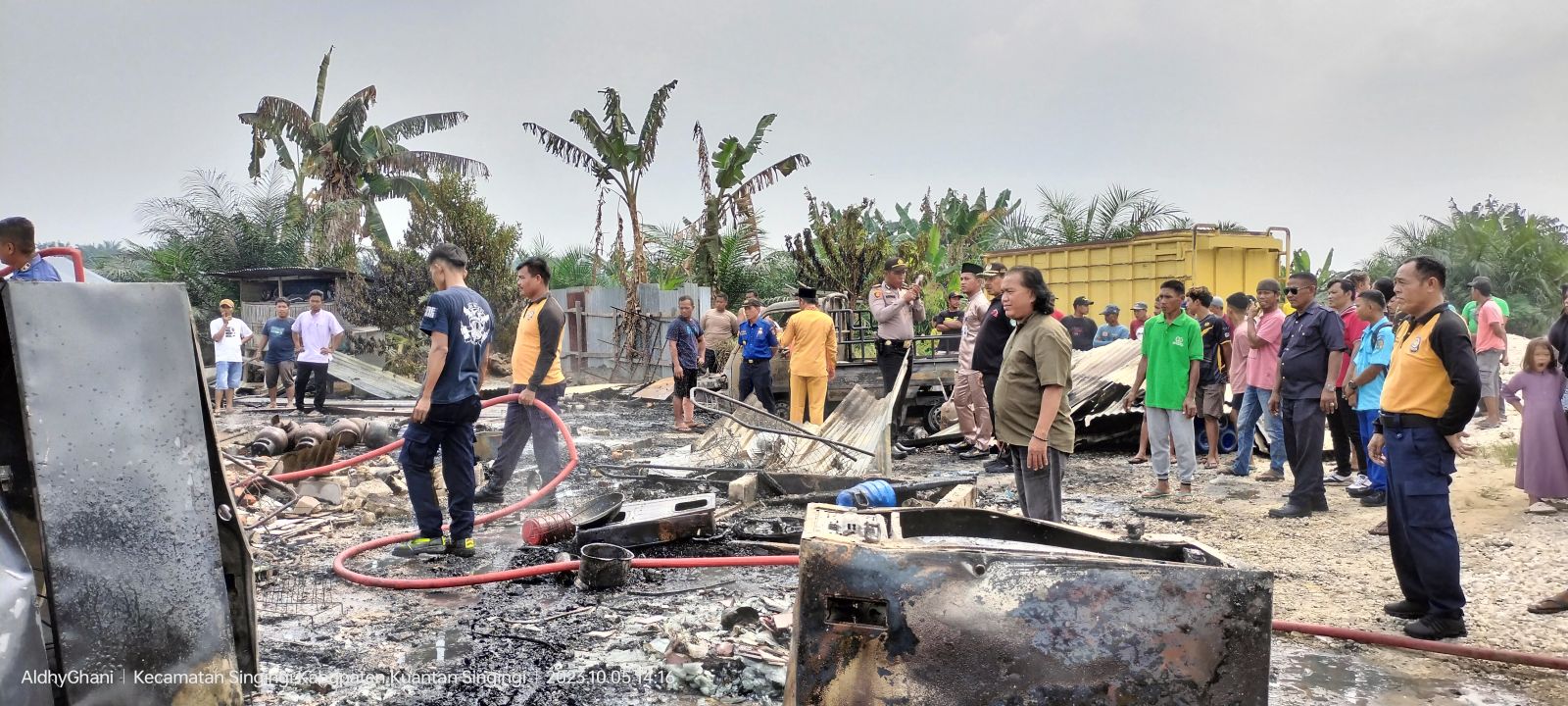 Warga yang mengetahui informasi dari video yang di share ke WA group, langsung berbondong-bondong menuju ke tempat kejadian itu untuk membantu memadamkan api.