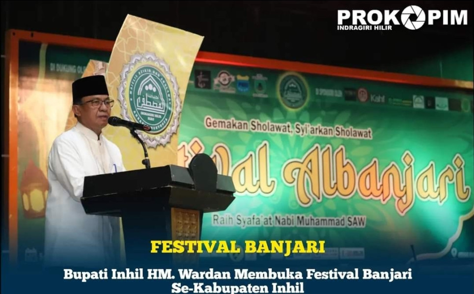 KILASRIAU.com - Bupati Indragiri Hilir HM. Wardan membuka Festival Banjari se Kabupaten Indragiri Hilir yang dilaksanakan di gedung daerah Engku Kelana Tembilahan, Kamis malam (05/10/2023).