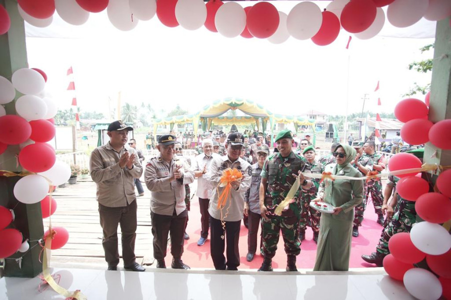 KILASRIAU.com, ENOK - Dandim 0314/Inhil Letkol Inf Fikky Nur Kuncoro Jati, S.H., M.Han bersama bupati HM Wardan menghadiri peresmian pos Ramil kecamatan Enok.