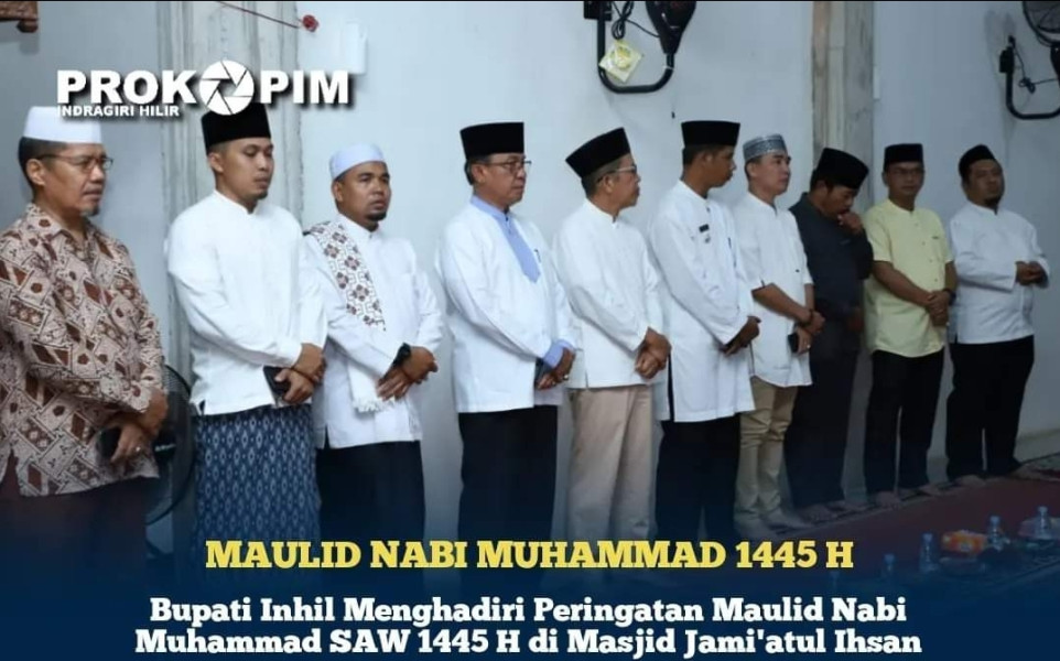 Bupati Inhil Menghadiri Peringatan Maulid Nabi Muhammad SAW 1445 H di Masjid Jami'atul Ihsan