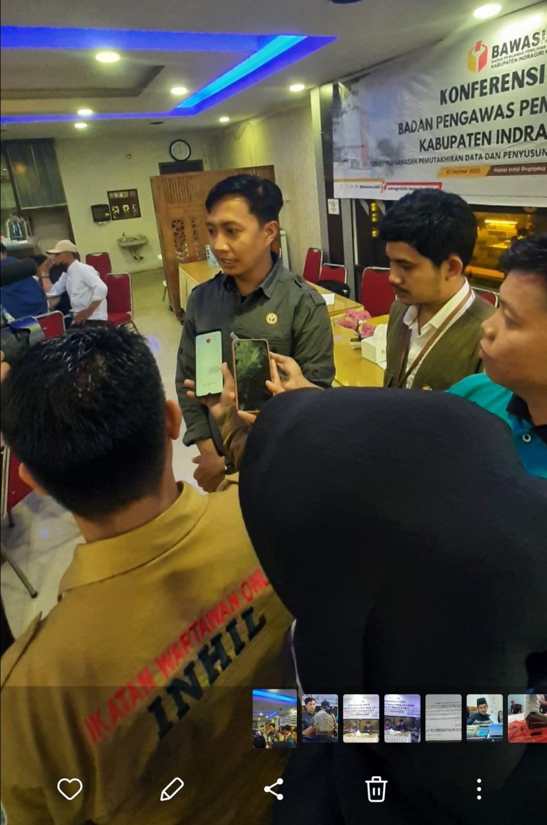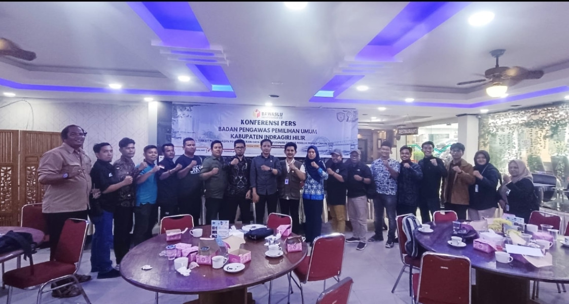 KILASRIAU.com - Bertempat di salah satu Aula Hotel di Tembilahan Badan Pengawas Pemilihan Umum (Bawaslu) Kabupaten Indragiri Hilir (Inhil) menyelenggarakan konferensi pers sekaligus silaturahmi bersama rekan-rekan pers yang ada di Kabupaten Inhil, Selasa (10/10/23).