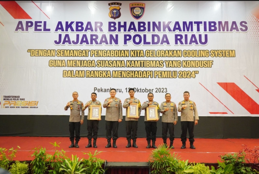 Penghargaan itu diterima Briptu Salman Alfarisi saat mengikuti kegiatan Apel Akbar Bhabinkamtibmas jajaran Polda Riau, Kamis (12/10/2023), di Ballroom Hotel Labersa Kota Pekanbaru.