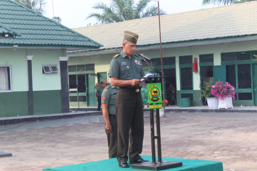 Penegasan tersebut disampaikan oleh Dandim 0314/Inhil Letkol Inf Fikky Nur Kuncoro Jati, S.H., M.Han yang diwakili oleh Pasi OPS kodim 0314/Inhil, Kapten Arh Agus Purwanto saat memimpin upacara apel bulanan di lapangan Makodim 0314/Inhil,Selasa(17/10/2022).