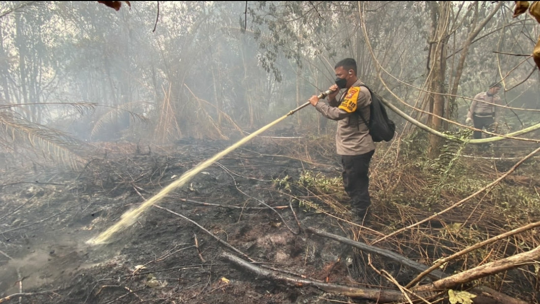 Kapolres Inhil Turun Langsung Tangani Karhutla di Keritang