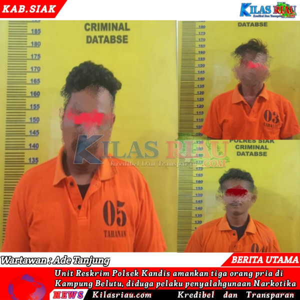 Unit Reskrim Polsek Kandis Amankan Tiga Orang Pria di Kampung Belutu, diduga Pelaku Penyalahgunaan Narkotika