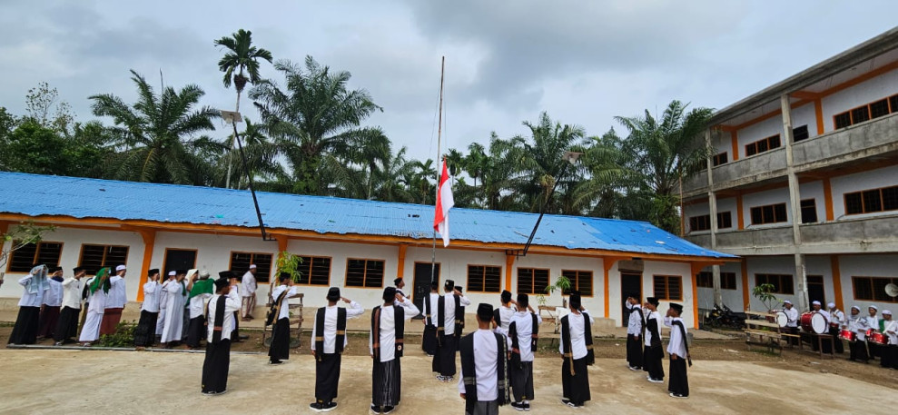 KILASRIAU.com - Pondok pesantren modern Al Azkiya desa Pengalihan Kecamatan Keritang - Inhil - Riau menggelar upacara Hari Santri Nasional Tahun 2023, Ahad (22/10/23).