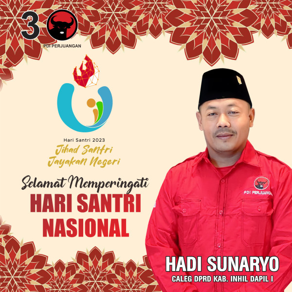Hadi Sunaryo Bacaleg DPRD Inhil Dapil Satu Inhil Ucapkan Selamat Hari Santri Nasional 2023