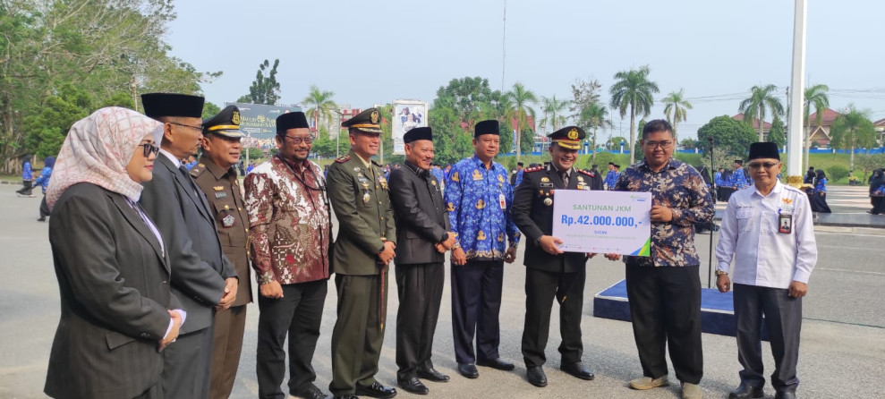 Usai pelaksanaan upacara, dilaksanakan pula pemberian Penyerahan simbolis santunan Jaminan Kematian (JKM) BPJS Keenagakerjaan Rp. 42.000.000 kepada Muztahik Baznas Indragiri Hulu an. Sigin.