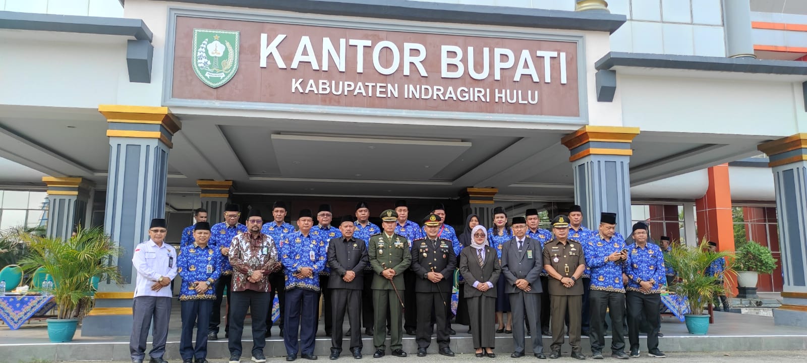 Tampak hadir Kapolres Inhu, Sekretaris Daerah Kab. Inhu, Para Asisten, Staf Ahli, Wakil Ketua DPRD Inhu, sejumlah Kepala OPD, Kepala Kantor Cabang BPJS Ketenagakerjaan Rengat dan seluruh ASN Pemkab Inhu serta Personel TNI sebagai peserta upacara.