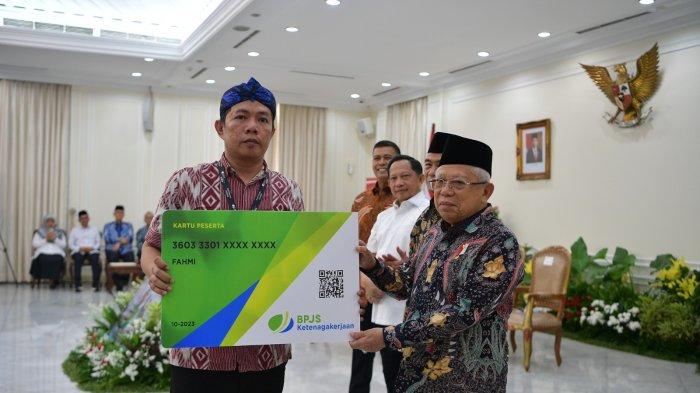 Bertempat di Istana Wapres, dalam kesempatan tersebut Wapres juga menyerahkan kartu kepesertaan BPJS Ketenagakerjaan kepada perwakilan pekerja rentan dari beragam profesi diantaranya petani, nelayan, pekerja lintas agama, tukang ojek dan pedagang. Hal ini tentunya menjadi bukti negara hadir untuk menjadi jaring pengaman bagi pekerja dan keluarganya agar tidak jatuh dalam jurang kemiskinan saat mengalami risiko kecelakaan kerja, kematian, dan hari tua.