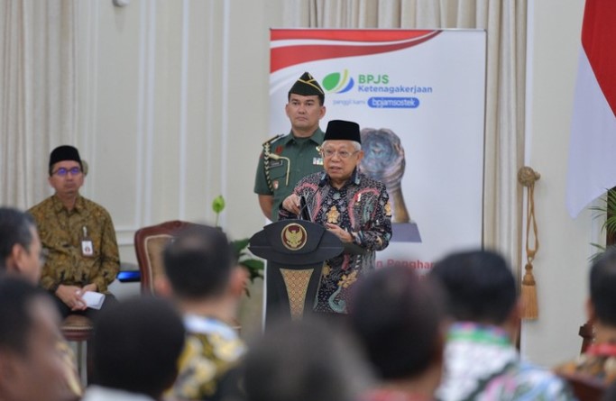 KILASRIAU.com, JAKARTA - Wakil Presiden Republik Indonesia Ma’ruf Amin menginstruksikan kepada Kementerian Lembaga serta seluruh kepala daerah, untuk terus mendukung perluasan cakupan kepesertaan program jaminan sosial ketenagakerjaan melalui dukungan regulasi, kebijakan program dan anggaran. Hal ini bertujuan agar program strategis pemerintah tersebut mampu memberikan perlindungan dan manfaat optimal bagi pekerja Indonesia.