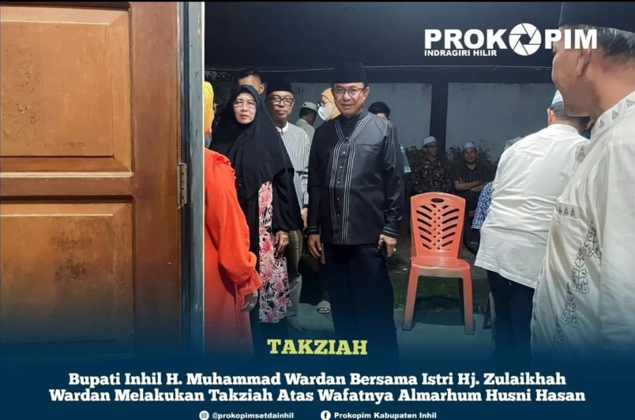 KILASRIAU.com - Bupati Indragiri Hilir (Inhil) H. Muhammad Wardan didampingi Istri Hj. Zulaikhah Wardan melakukan Takziah ke Rumah Almarhum Husni Hasan yang bertempat di Jl. Akasia Indah Tembilahan, Minggu (29/10/2023).