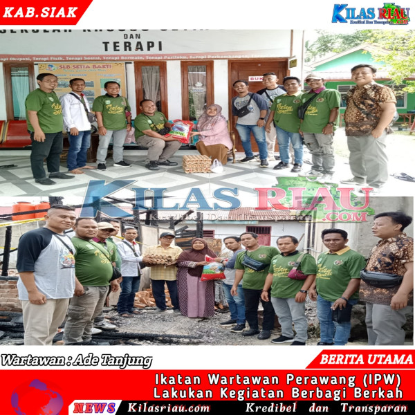 KILASRIAU.COM – Ikatan Wartawan Perawang (IWP) Kecamatan Tualang Kabupaten Siak beri bantuan sembako pada warga korban kebakaran dan SLB Setia Bakti, Senin (30/10/2023).