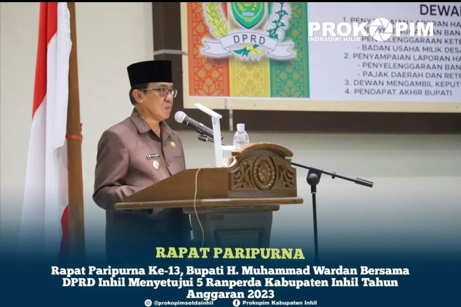 Dalam kesempatan ini, Bupati Inhil H. Muhammad Wardan bersama DPRD menyetujui 5 Ranperda Kabupaten Inhil Tahun Anggaran 2023 yakni tentang :
