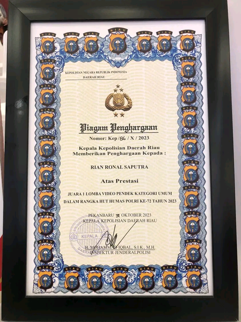 Kampung Tualang Raih Juara 1 Lomba Film Pendek, Dalam rangka HUT Humas Polri ke -72 tahun 2023 tingkat Polda Riau