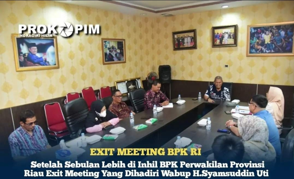 KILASRIAU.com - Wakil Bupati H.Syamauddin Uti, menghadiri Exit Meeting Badan Pemeriksa Keuangan (BPK) RI Perwakilan Provinsi Riau, Kamis (02/11/2023) siang di Ruang Rapat Lantai 1 Kantor Bupati Jl.Akasia.