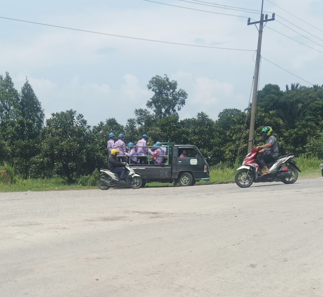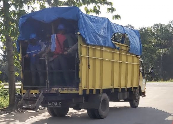 KILASRIAU.COM, Perawang - Angkutan barang dijadikan angkutan orang atau pekerja, sudah bertahun tahun lamanya dan bahkan sudah menjadi hal yang lumrah bagi pekerja bekerja di Lokasi PT IKPP Mill Perawang Kecamatan Tualang Kabupaten Siak. Senin (06/11/2023)