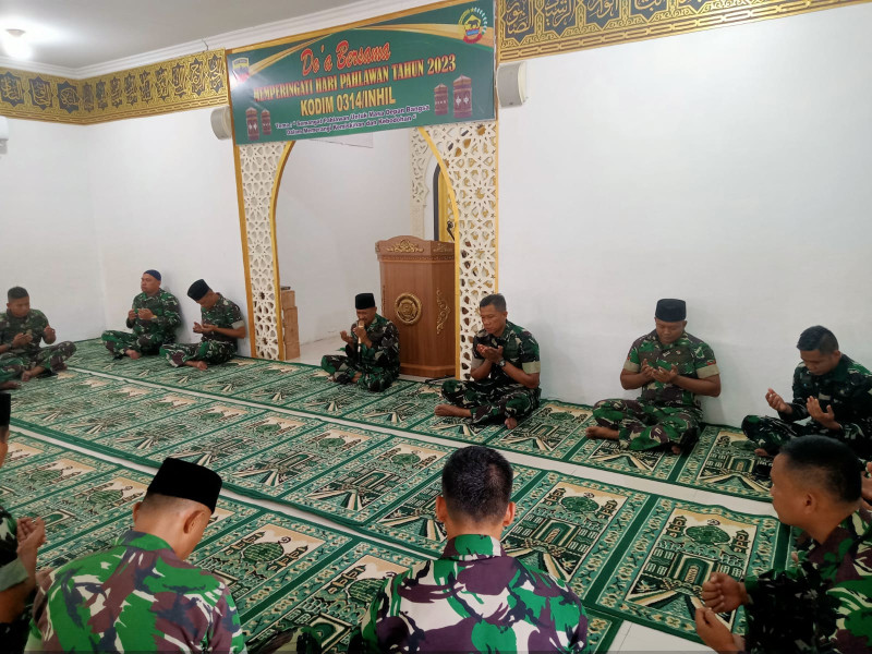 KILASRIAU.com - Kodim 0314/Inhil menggelar doa bersama dalam rangka memperingati hari pahlawan nasional tahun 2023 yang dilaksanakan di mushollah Al-Iklas Kodim 0314/Inhil, Jum'at(10/11/2023)