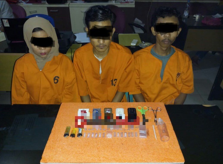 Tiga Pelaku Pengedar Narkoba, 1 Diantaranya Wanita Hijaber di Bekuk Polres Inhil