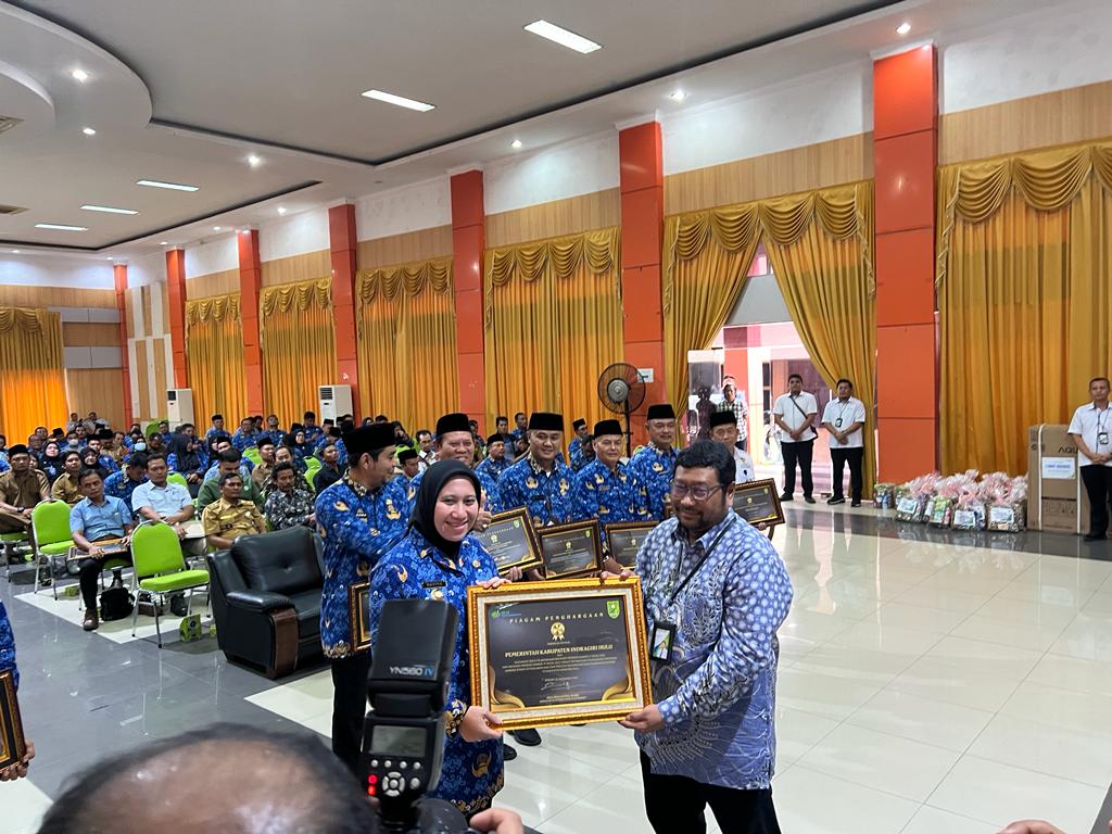 KILASRIAU.com, Rengat —BPJS Ketenagakerjaan Rengat memberikan penghargaan terkait implementasi jaminan sosial ketenagakerjaan kepada Pemerintah Daerah Indragiri Hulu beserta seluruh OPD dan perusahaan. Program penghargaan itu dilakukan di Gedung Dang Purnama Rengat pada Senin, 27 November 2023 oleh Kepala Kantor Cabang Rengat Rulli Jaya Santika, dan Bupati Indragiri Hulu, Rezita Meylani Yopi. Kegiatan ini juga dihadiri oleh Kepala Dinas, Camat, Desa Se-Kabupaten Indragiri Hulu dan perusahaan besar yang berada di wilayah Kabupaten Indragiri Hulu.