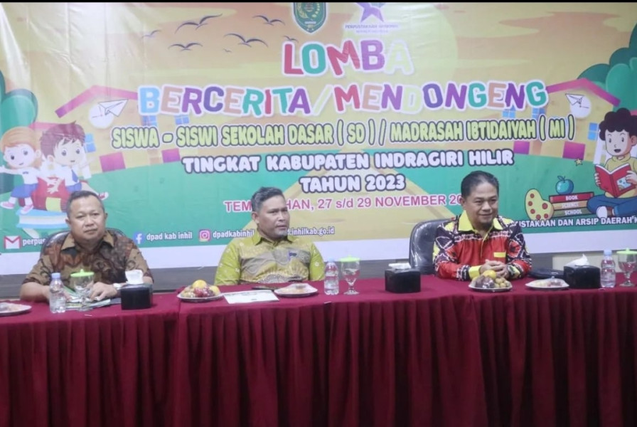 Sementara itu Pj Bupati dalam sambutan tertulisnya yang dibacakan oleh Staf Ahli H. Muamar Khadafi mengatakan, atas nama pemerintah Indragiri Hilir sangat menyambut baik fan mengapresiasi kegiatan lomba bercerita dan mendongeng ini.