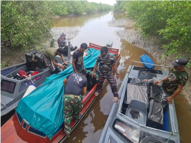 Lanal Dumai Kembali Gagalkan Penyelundupan Rokok di Perairan Sungai Guntung Inhil