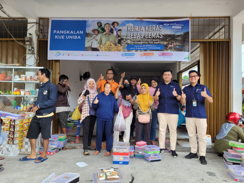 Sejumlah 60 Pedagang terdiri dari Pelapak atau pedagang keliling hingga Produsen pembuat kue yang tergabung dalam Pangkalan Kue UNIBA telah terdaftar program BPJS Ketenagakerjaan dan terlindungi Jaminan Kecelakaan Kerja (JKK), Jaminan Kematian (JKM) serta Jaminan Hari Tua (JHT).