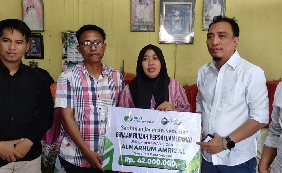 "Alhamdulillah, kita RPU Berkerjsama dengan BPJS ketenagakerjaan memiliki program jaminan kecelakaan kerja dan jaminan kematian kepada kaum duafa yang menjadi sasaran binaan rumah persatuan umat, contohnya keluarga ataupun alhi waris almarhum pak Amrizal sudah mendapatkan santunan sebesar Rp 42.000.000," tandasnya.