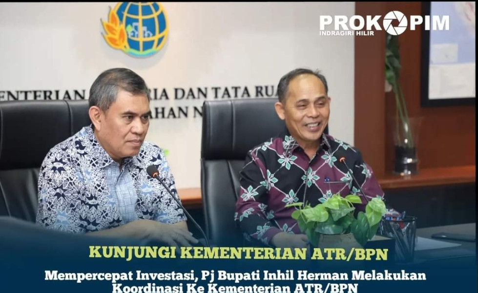 KILASRIAU.com, Jakarta - Kementerian Agraria dan Tata Ruang /BPN menjadi tujuan Pj.Bupati Inhil Herman guna berkoordinasi terkait Percepatan Penerbitan Rancangan Peraturan Menteri Agraria dan Tata Ruang/BPN tentang Rencana Tata Ruang Wilayah Kabupaten Indragiri Hilir.