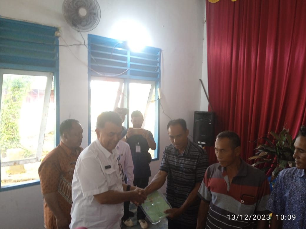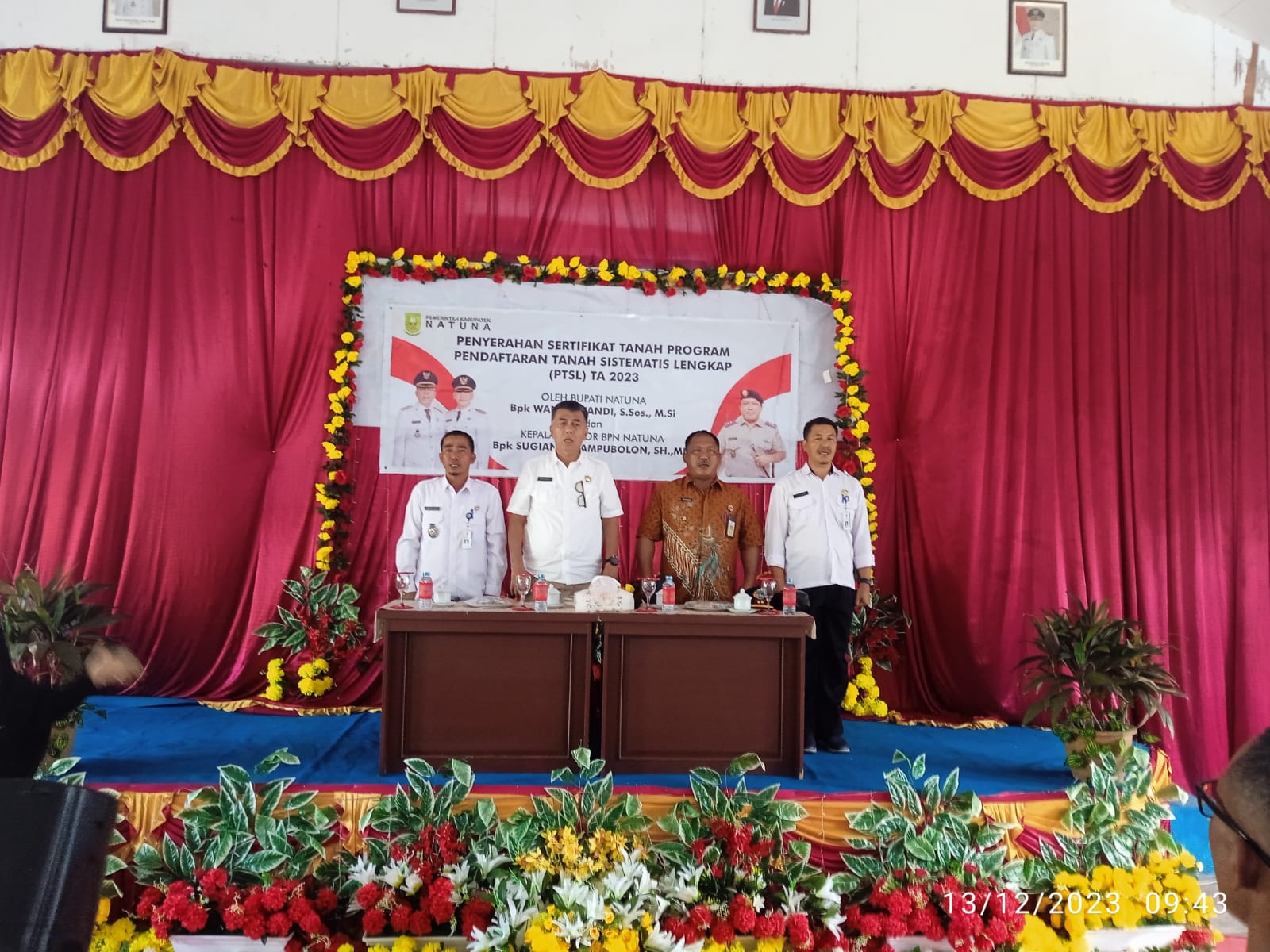 Kilasriau.com - Bupati Natuna, Wan Siswandi bersama Kepala BPN Natuna, Sugianto Tampubolon, serahkan sertifikat tanah milik warga di Kecamatan Bunguran Barat, tepatnya di gedung serba guna, Kecamatan Bunguran Barat, pada Rabu 13 Desember 2023 pagi.