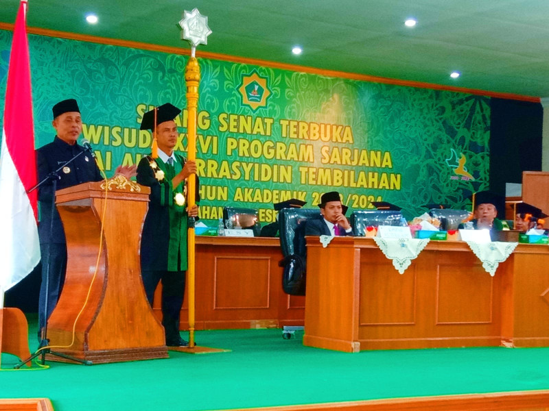 KILASRIAU.com -- Penjabat(Pj) Bupati Inhil H.Herman ST MT menghadiri sekaligus memberikan sambutan pada acara Sidang Senat Terbuka Wisuda XXVI Program Sarjana STAI AULIAURRASYIDIN Tembilahan Periode I Tahun Akademik 2023/2024, Kamis (14/12).