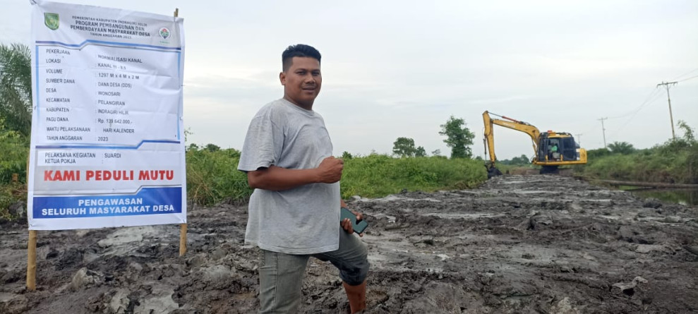 KILASRIAU.com - Pemerintah Desa Wonosari melakukan normalisasi kanal bantu yang dananya bersumber dana desa.