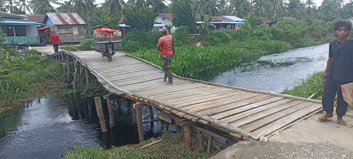 Kilasriau.com - Pemerintah Desa Wonosari, Kecamatan Pelangiran bersama warga melaksanakan kegiatan bakti sosial gotong royong memperbaiki salah satu jembatan yang ada di desa.