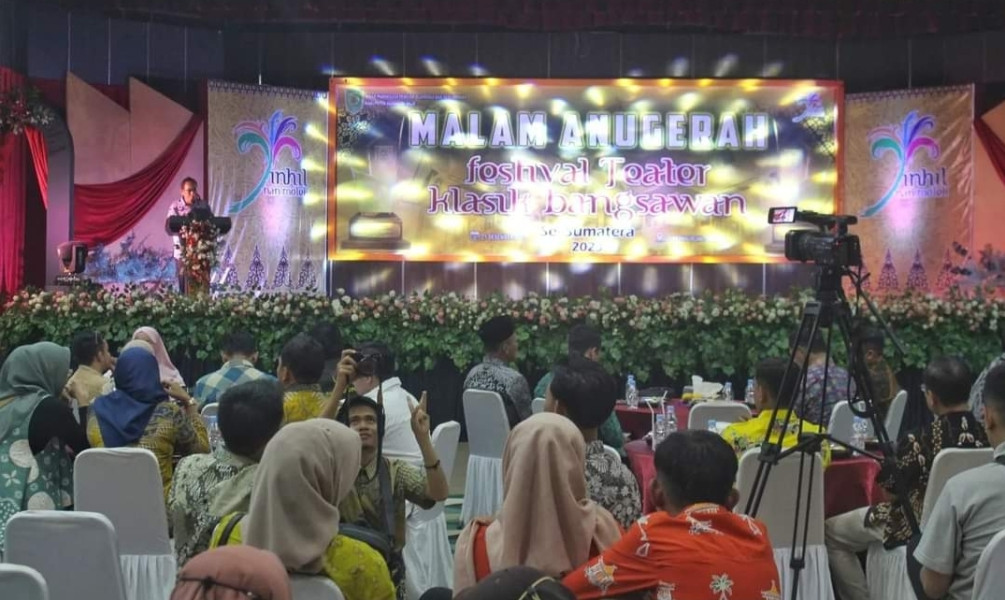 KILASRIAU.com - Dinas Pariwisata, Pemuda dan Olahraga, dan Kebudayaan (Disparporabud) Kabupaten Indragiri Hilir (Inhil) menggelar acara Malam Anugerah Festival Teater Klasik Bangsawan Se-Sumatera Tahun 2023 di Gedung Engku Kelana Tembilahan, Kamis (21/12/2023) malam.
