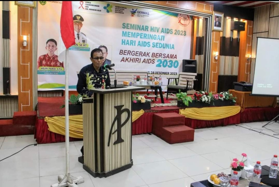 KILASRIAU.com -Penjabat Bupati Indragiri Hilir, yang juga menjabat sebagai Ketua Komisi Penanggulangan AIDS (KPA) Inhil, membuka secara resmi kegiatan Seminar dalam rangka peringatan Hari AIDS Sedunia di hotel Inhil Pratama, Kamis, (28/12/2023).