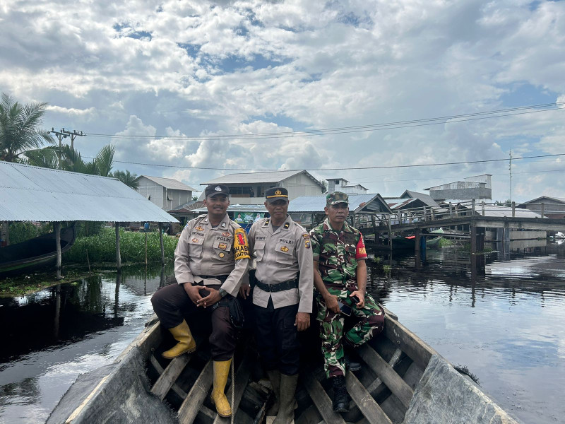 Personil TNI-Polri Gunakan Pompong Sampaikan Himbauan Pemilu