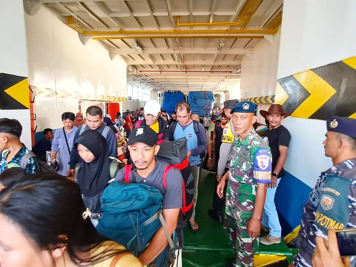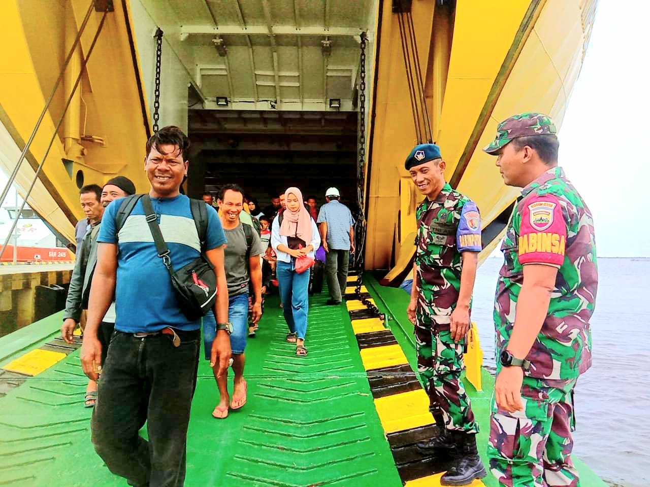 Kilasriau.com - Dalam memberikan rasa aman dan nyaman kepada masyarakat, Babinpotdirga Lanud Raden Sadjad Natuna terus melaksanakan pengamanan dan monitoring terhadap penumpang turun dan naik di Kapal Motor Penyeberangan (KMP) Bahtera Nusantara 01 di Pelabuhan Ranai Jalan Tanjung Payung, Penagi, Kelurahan Batu Hitam, Kecamatan Bunguran Timur, Kabupaten Natuna, Provinsi Kepulauan Riau, Minggu (7/1/2023).